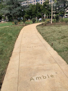 Now, in 2021, we have all sorts of plans to continue the legacy of lifelong learning in the park, by bringing words and language to this verdant space and its meandering paths — and some are all ready to go! A writing journal is tucked away in one of the park benches in the Children’s Garden, and we commissioned a list of synonyms for “walk” to line the paths leading up to the Garden — it will be so fun to see young (and old?) visitors jumping, ambling, skipping, and hopping along — true to Planet Word’s efforts to get the whole body involved in learning.
