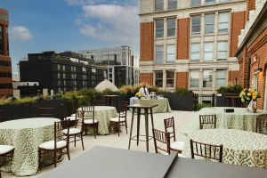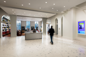 The Bloomberg Philanthropies Great Hall is the architectural centerpiece of the Franklin School and Planet Word’s showcase venue both day and night. The 5,000-LED globe that anchors the Spoken World exhibit becomes a stunning chandelier as it rises at the turn of a key up to the towering 22-foot-high ceiling. With 14-foot windows overlooking Franklin Square, trompe l’oeil frescoes, and a historic proscenium arch, the elegant, versatile Great Hall is unlike any other event space in Washington.